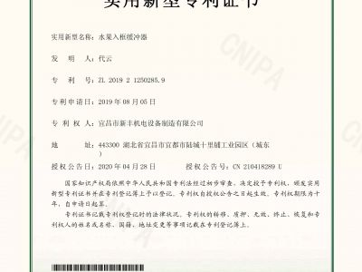 實用新型專利證書《水果入框緩沖器》