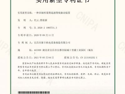 實用新型專利證書《一種多級料果篩選滾筒線驅動裝置》