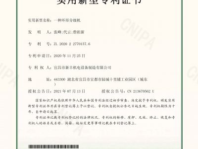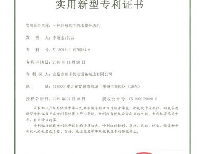 實用新型專利證書《一種環形分級機》