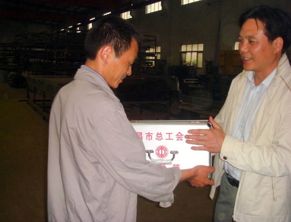4月23日下午,宜昌市委常委、市總工會(huì)主席劉學(xué)甫在宜都市委副書(shū)記、市長(zhǎng)羅聯(lián)峰,市委常委、市委宣傳部長(zhǎng)、市總工會(huì)主席王世斌的陪同下,到宜昌市新豐機(jī)電設(shè)備制造有限公司生產(chǎn)一線慰問(wèn)困難職工陳鳳友,與他親切交談,詳細(xì)詢問(wèn)了陳鳳友的身體情況、工作情況及家庭情況,送去慰問(wèn)金500元。并代表湖北省總工會(huì)、宜昌市總工會(huì)到生產(chǎn)一線為職工贈(zèng)送“關(guān)愛(ài)箱”。