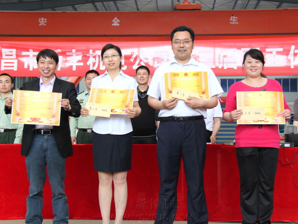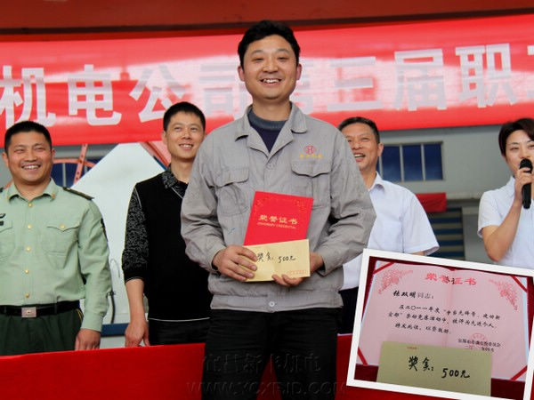 最后,張總為獲得宜都市勞動競賽“先進個人”稱號的張雙明同志頒獎。