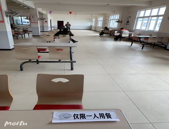 建立復工人員管理臺賬,密切配合上級疫情防控工作指揮部工作,每天按時向企業所在村社區上報復工人員體溫監測記錄。上班人員全程佩戴好口罩,規范食堂用餐制度,排隊間隔1.5米,實行“一人一桌”用餐制,確保員工用餐安全。
